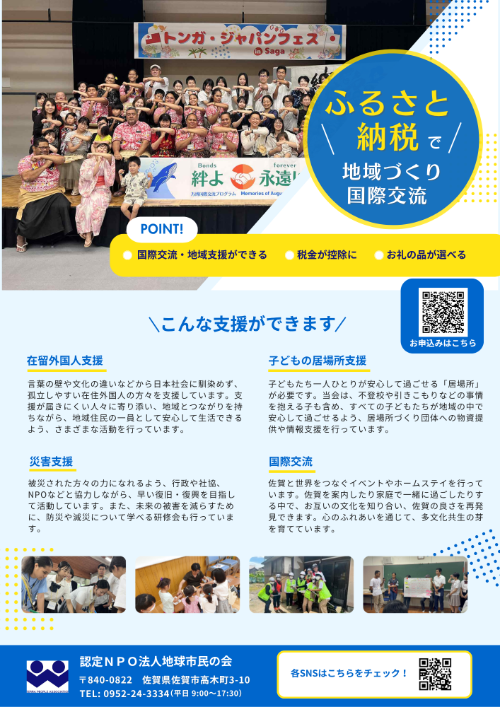 ふるさと納税を通じて、お得に地球市民の会を支援することができます!